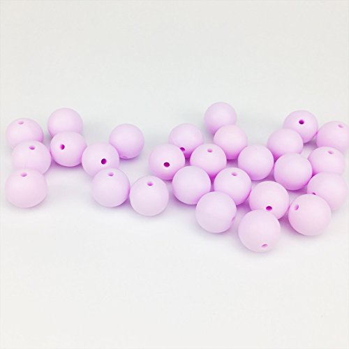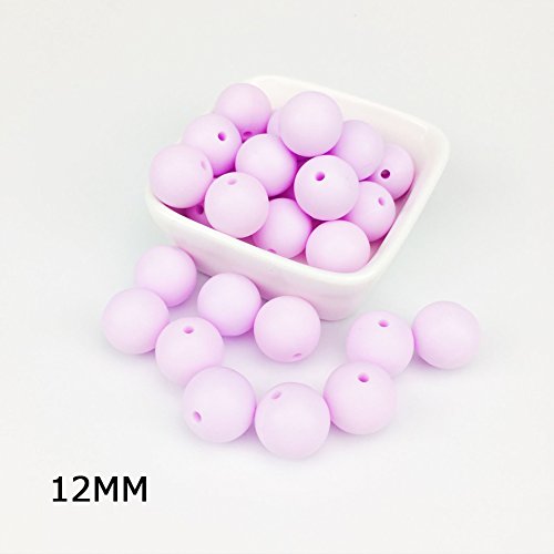 Mamimami Home シリコーン製 安全歯固め ビーズ 12MM 授乳看護用 ネックレス おしゃぶりチェーン 幼児 噛がため玩具 新生児贈り物 DIY用 円形 アクセサリー 17色選択可能 50個・キャンディーパープル [BPAフリー][FDA認可済]