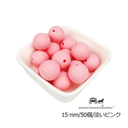 Mamimami Home シリコーン製 安全歯固め ビーズ 15MM/50個/淡いピンク 授乳看護用 ネックレス おしゃぶりチェーン 幼児 噛がため玩具 新生児贈り物 DIY用 円形 アクセサリー[BPAフリー][FDA認可済]