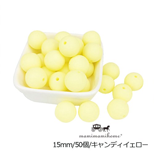 Mamimami Home シリコーン製 安全歯固め ビーズ 15MM/50個/キャンディーイエロー 授乳看護用 ネックレス おしゃぶりチェーン 幼児 噛がため玩具 新生児贈り物 DIY用 円形 アクセサリー[BPAフリー][FDA認可済]