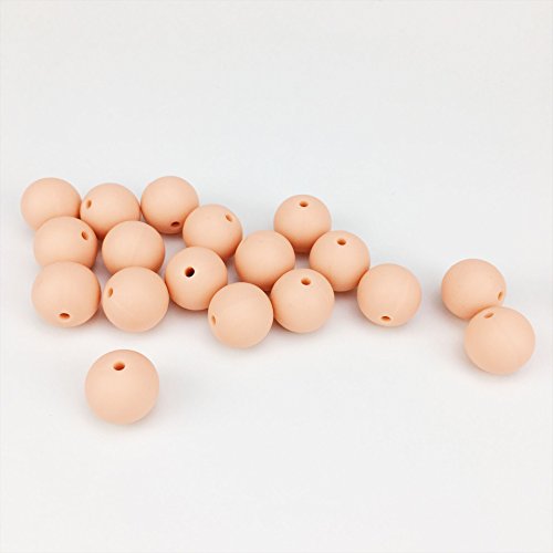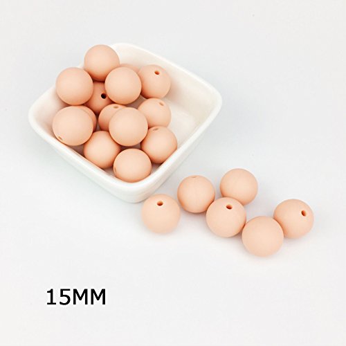 Mamimami Home シリコーン製 安全歯固め ビーズ 15MM 授乳看護用 ネックレス おしゃぶりチェーン 幼児 噛がため玩具 新生児贈り物 DIY用 円形 アクセサリー 17色選択可能 50個・ピーチ [BPAフリー][FDA認可済]