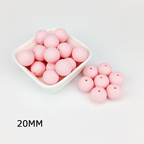 Mamimami Home シリコーン製 安全歯固め ビーズ 20MM 授乳看護用 ネックレス おしゃぶりチェーン 幼児 噛がため玩具 新生児贈り物 DIY用 円形 アクセサリー 17色選択可能 50個・キャンディピンク [BPAフリー][FDA認可済]