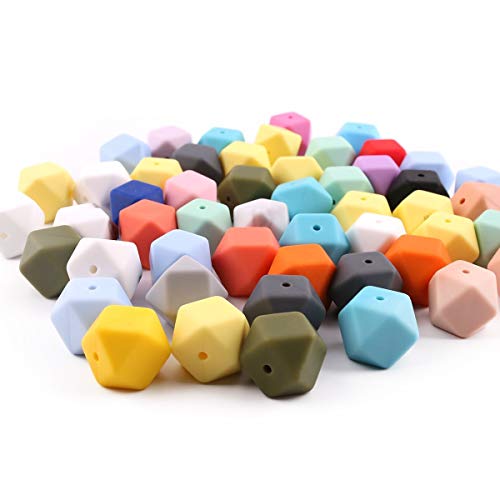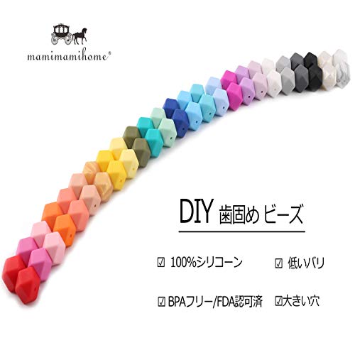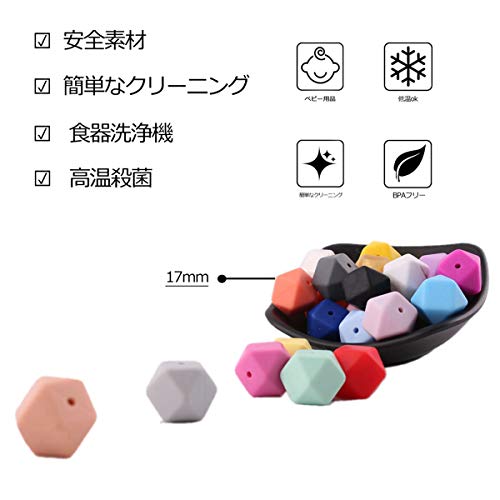 Mamimami Home 歯固め おしゃぶり 17MM シリコーン製 八角ビーズ 50個 出産祝い 歯がため 赤ちゃん おもちゃ ガラガラ ライト DIY アクセサリー 0歳 1歳 2歳 3歳「FDA認可済」「BPAフリー」