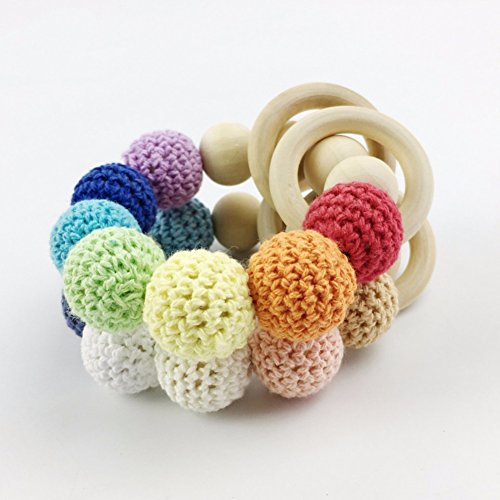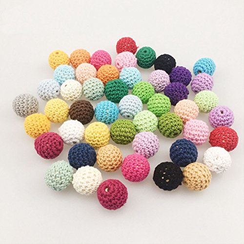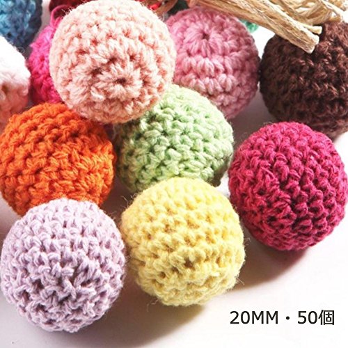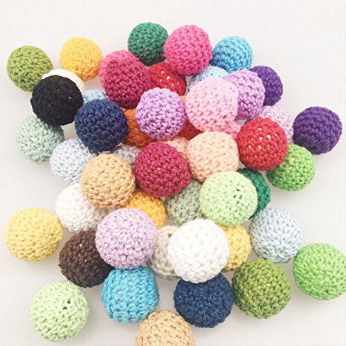 Mamimami Home 歯がため 木製 知育玩具 かぎ針編みのビーズ 2CM 26色混合色 出産祝い はがため 赤ちゃん 誕生日プレゼント 歯固め アクセサリー 50個 「FDA認可済」「BPAフリー」