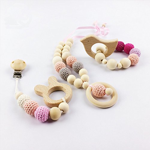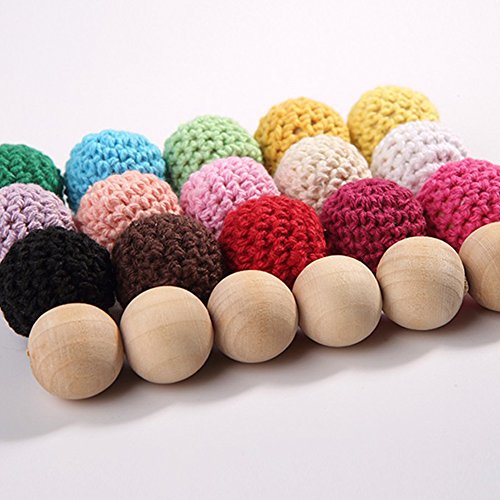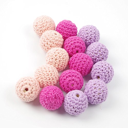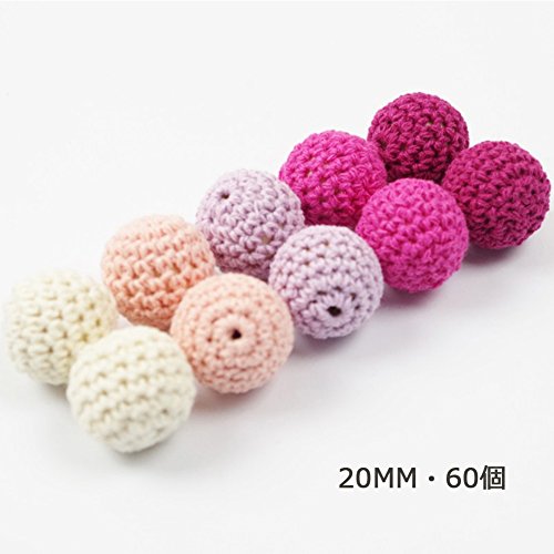 Mamimami Home はがため 木製 知育玩具 歯固め かぎ針編みのビーズ 20MM ピンクシリーズ DIY用 知育玩具 赤ちゃん 噛でも大丈夫 安全 出産祝い 誕生日プレゼント ギフト 60個「FDA認可済」「BPAフリー」
