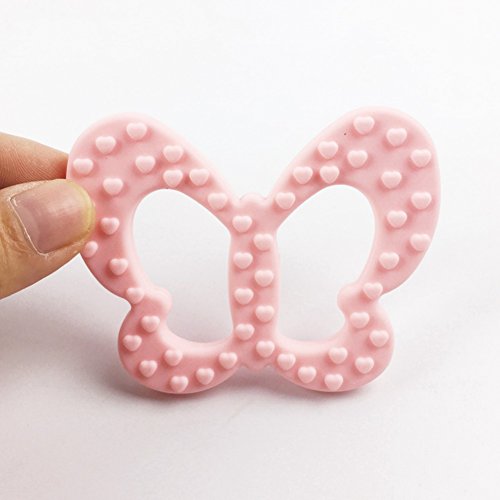 Mamimami Home おしゃれ歯固め おしゃぶり 7.8x6.1cm バタフライ 面白い噛の玩具 赤ちゃん 幼児 はがため 歯茎をマッサージ 女の子 誕生祝い プレゼント 看護ジュエリー 1個ピンク[BPAフリー][FDA認可済]