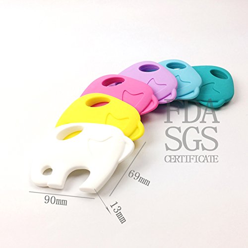 Mamimami Home 歯固め シリコーン製 大きな象 90x69x13mm 歯茎をマッサージ 赤ちゃん 噛がため玩具 誕生日 誕生祝い プレゼント 男の子 女の子 おしゃぶり はがため 11色選択 5色・5個[BPAフリー][FDA認可済]