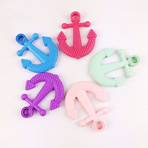 Mamimami Home 歯がため 歯固め シリコーン アンカー ガラガラ ペンダント おしゃぶり 授乳玩具 出産祝い 内祝い ベビーギフト 男の子 女の子 6x7.7CM 5個/5色[BPAフリー][FDA認可済]