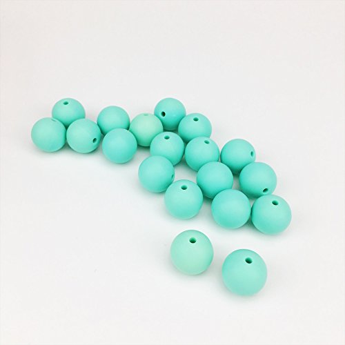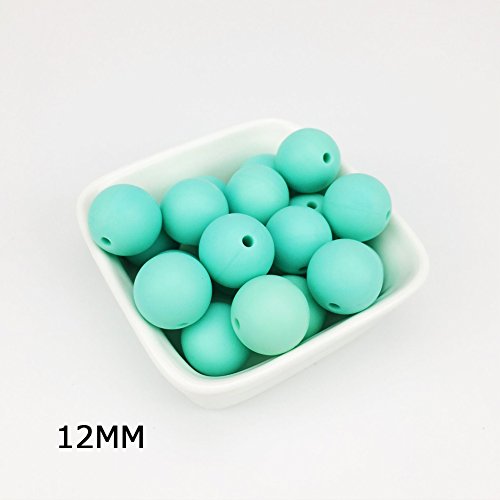 Mamimami Home シリコーン製 安全歯固め ビーズ 12MM 授乳看護用 ネックレス おしゃぶりチェーン 幼児 噛がため玩具 新生児贈り物 DIY用 円形 アクセサリー 17色選択可能 50個・アクアマリン [BPAフリー][FDA認可済]