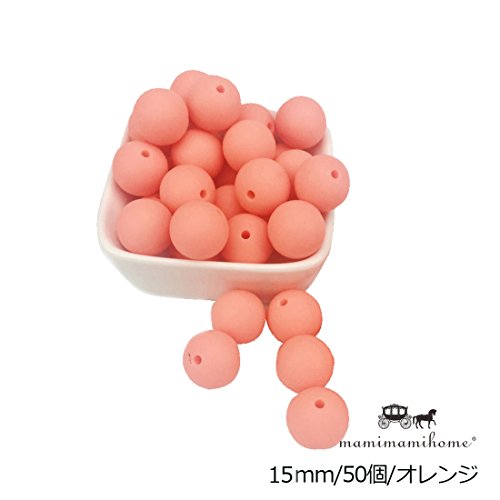 Mamimami Home シリコーン製 安全歯固め ビーズ 15MM/50個/オレンジ 授乳看護用 ネックレス おしゃぶりチェーン 幼児 噛がため玩具 新生児贈り物 DIY用 円形 アクセサリー[BPAフリー][FDA認可済]