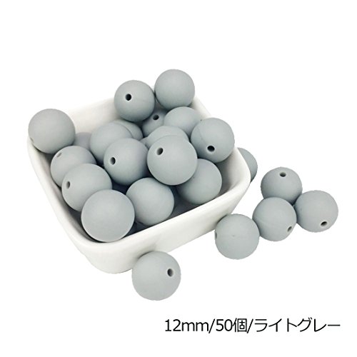 Mamimami Home シリコーン製 安全歯固め ビーズ 12MM/50個/ライトグレー 授乳看護用 ネックレス おしゃぶりチェーン 幼児 噛がため玩具 新生児贈り物 DIY用 円形 アクセサリー[BPAフリー][FDA認可済]