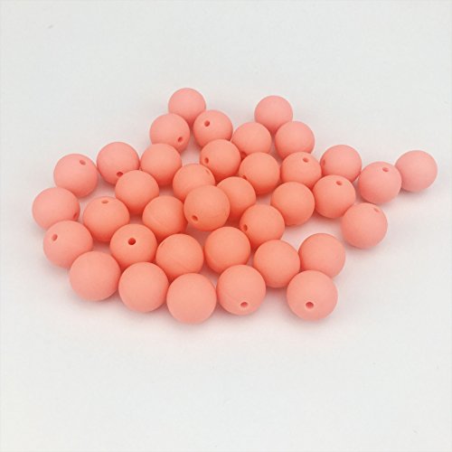 Mamimami Home シリコーン製 安全歯固め ビーズ 20MM 授乳看護用 ネックレス おしゃぶりチェーン 幼児 噛がため玩具 新生児贈り物 DIY用 円形 アクセサリー 17色選択可能 50個・オレンジ [BPAフリー][FDA認可済]