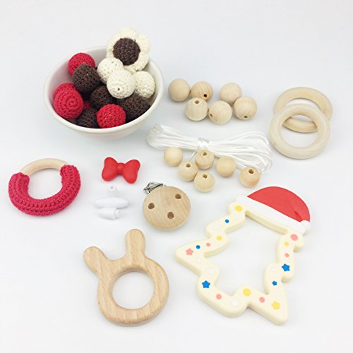 Mamimami Home 歯固め DIY シリコーン クリスマスツリー 木製 看護ネックレス ブレスレット おしゃぶり 赤ちゃんの玩具 噛がため 出産祝い ベビーギフト 男の子 女の子[BPAフリー][FDA認可済]