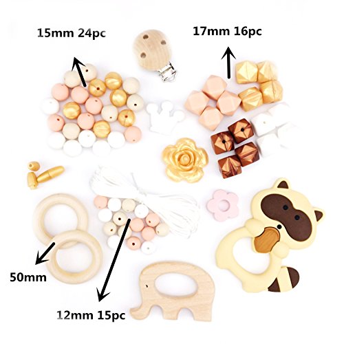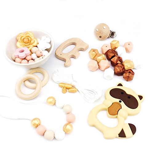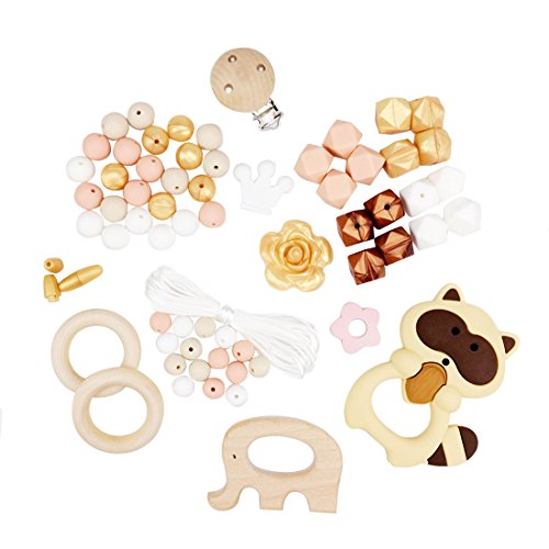 Mamimami Home おしゃぶり 歯固め DIY シリコーンラクーン 木製象 看護ネックレス ブレスレット ペンダント ママパパ 安心の素材 赤ちゃんの噛がため 出産祝い ベビーギフト クリスマス プレゼント 男の子 女の子[BPAフリー][FDA認可済]