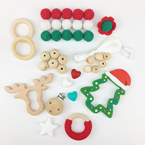 Mamimami Home 歯固め DIY シリコーン クリスマスツリー 木製 看護ネックレス ブレスレット おしゃぶり 赤ちゃんの玩具 噛がため 出産祝い ベビーギフト 男の子 女の子[BPAフリー][FDA認可済]
