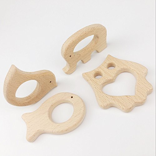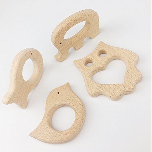Mamimami Home 噛がため 噛固め ブナ 木製動物 4タイプ/4個/ゼント ベビーおもちゃ 可愛い 知育玩具 DIY ネックレス ガラガラ おしゃぶりのチェーン ペンダント出産祝い 新生児贈り物 0-3歳「FDA認可済」「BPAフリー」