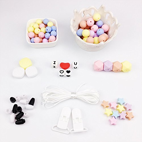 Mamimami Home 赤ちゃんの おしゃぶり 歯固め 噛がため 玩具 DIY アクセサリー ゼント 安全素材 BPAフリー シリコーンビーズ ダミークリップ 手作り ママ 看護ネックレス 出産祝い 新生児贈り物 男の子 女の子 1個 [FDA認可済]