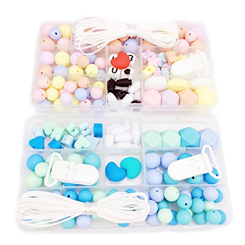 Mamimami Home 歯固め おしゃぶり DIYセット2個 長方形のプラスチックボックス 看護ネックレス 赤ちゃんのおもちゃ ママ授乳ジュエリー はがため チュアブルおしゃぶり 誕生日プレゼント [BPAフリー][FDA認可済]