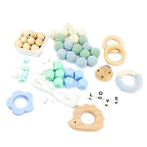 Mamimami Home 噛がため 安全素材 歯固めおしゃぶり DIYセット はりねずみ 材料パッケージ おしゃぶりチェーン 看護ネックレス 授乳用 幼児玩具 誕生ギフト 出産祝い 贈り物 [BPAフリー][FDA認可済]