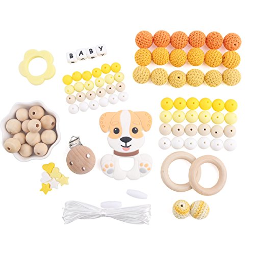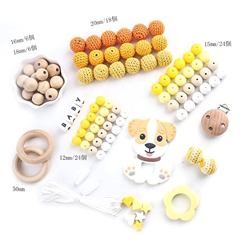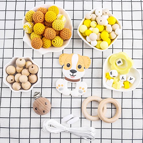 Mamimami Home 噛がため 安全素材 歯固めおしゃぶり DIYセット イエロー 犬 材料パッケージ おしゃぶりチェーン 看護ネックレス 授乳用 幼児玩具 誕生ギフト 出産祝い 贈り物 [BPAフリー][FDA認可済]