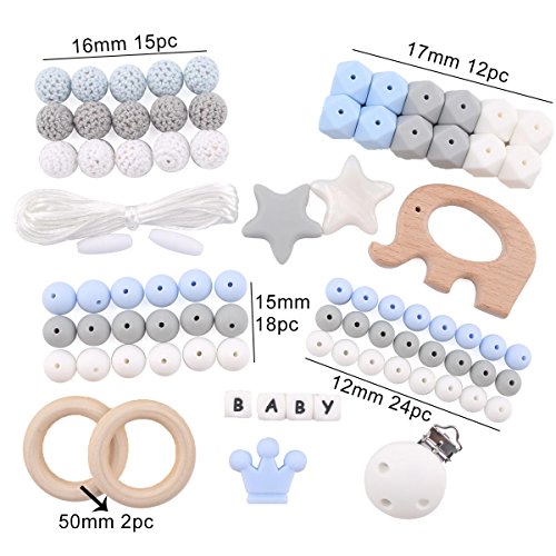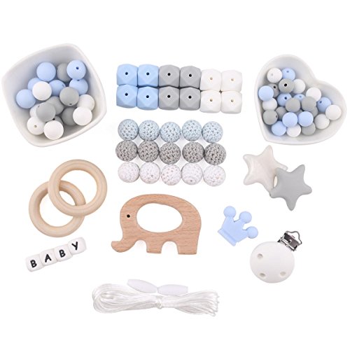 Mamimami Home 歯固め 噛むおしゃぶり DIY セット シリコンスター クリップ 木製象 針編みビーズ 手作りおもちゃ 看護ネックレス 生産お祝い「FDA認可済」「BPAフリー」