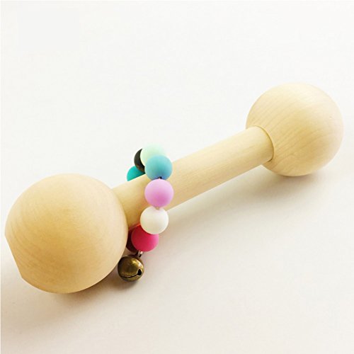 Mamiami Home 噛がため おしゃぶり シリコーンビーズ 木製 ダンベル ベビープレイジム ベル付キ 1個