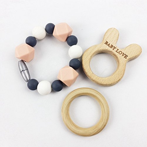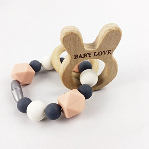 Mamimami Home 噛がため 木製 ガラガラ おしゃぶり シリコーン製 リング バニー ブレスレット(取り外し可能式)