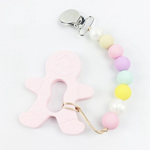 Mamimami Home おしゃぶり シリコーン製ペンダント ジンジャーブレッド・マン / ヒューマノイドビスケット ソフト 赤ちゃんを噛むおもちゃ ママ看護用 1個 ピンク