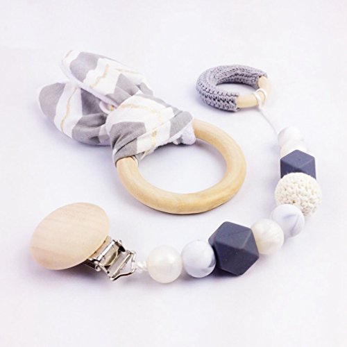 Mamimami Home おしゃぶり クリップ シリコーン ペンダント 噛がため 木製 リング コットン うさぎの耳 赤ちゃんのおもちゃ