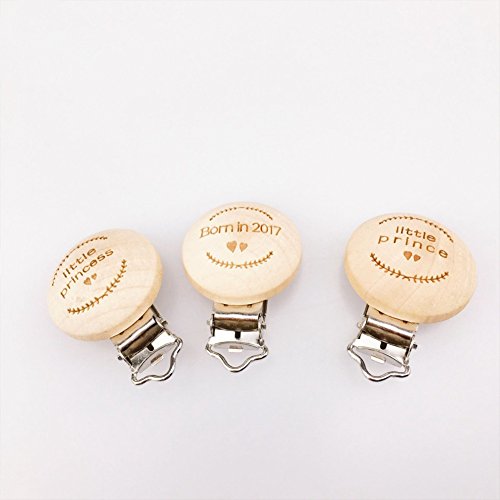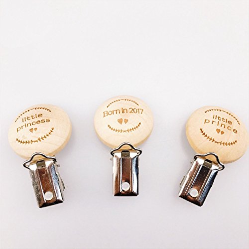 Mamimami Home 木製 おしゃぶりホルダー クリップ 天然木製 レーザー印刷 diy おしゃぶり ガラガラ ママの看護ジュエリー 「Prince」3.5x5.5cm 5個