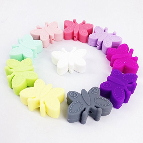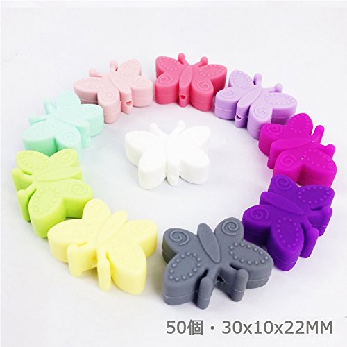 Mamimami Home 歯固め ビーズ 3CM リトルバタフライ シリコーン製 看護おしゃぶりチェーン DIY用 豊富な色 おしゃれビーズゼント 幼児カラートレーニング 知育玩具 カミカミ 50個・混合色「BPAフリー」「FDA認可済」