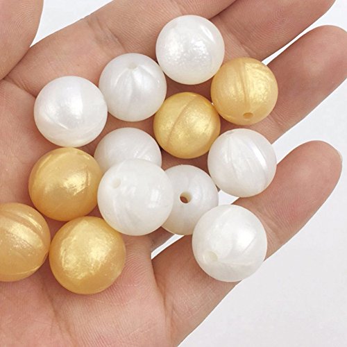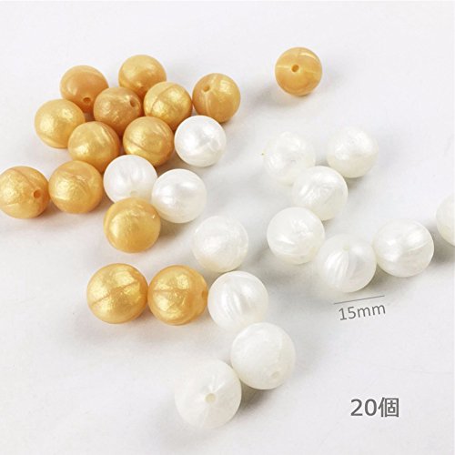 Mamimami Home 歯固め シリコーンビーズ ゴールド/パールホワイト 15MM DIY 看護アクセサリービーズ おしゃぶり 噛むガラガラ ネックレス 20個「BPAフリー」「FDA認可済」