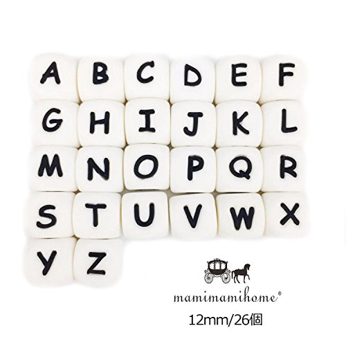 Mamimami Home 歯固め シリコーン製 レタービーズ 英語のアルファベット チュアブル 12MM 26個 DIY ユニーク 赤ちゃんのおしゃぶりチェーン 看護玩具 ママのジュエリー 「BPAフリー」「FDA認可済」