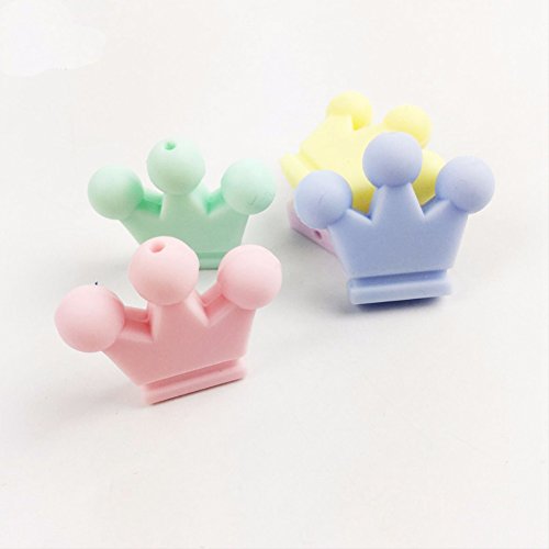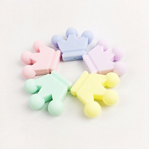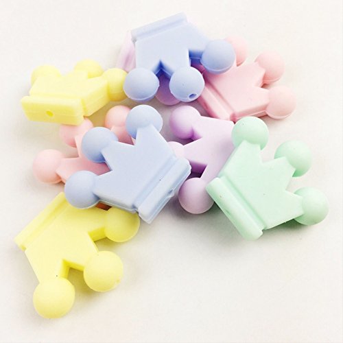 Mamimami Home 噛がため クラウン ビーズ シリコーン製 34x29x7MM ファッション 可愛い おしゃぶりチェーン アクセサリー DIY 幼児 歯固め玩具 ママの看護ジュエリー 10個 キャンディーカラー「BPAフリー」「FDA認可済」