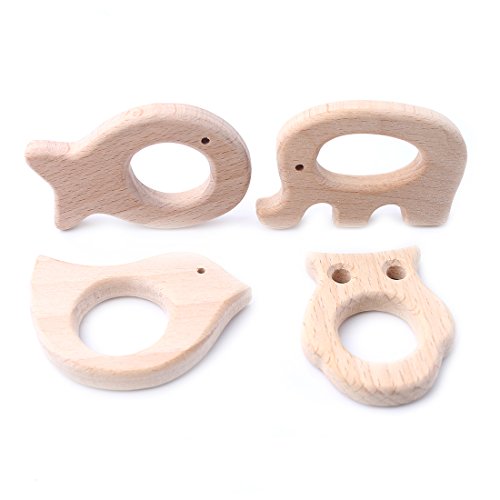 Mamimami Home 噛がため 歯固め 木製動物 4タイプ/4個/セット ベビーおもちゃ カミカミ DIY おしゃぶり ペンダント 知育玩具 出産祝い 新生児贈り物 ナチュラルブナ 「FDA認可済」「BPAフリー」