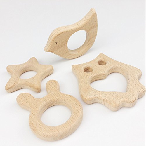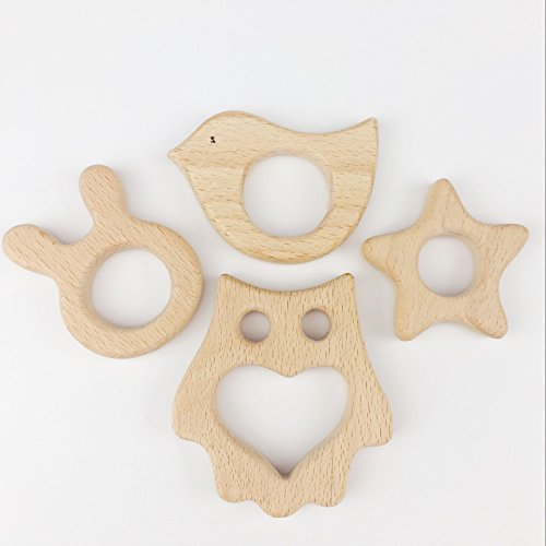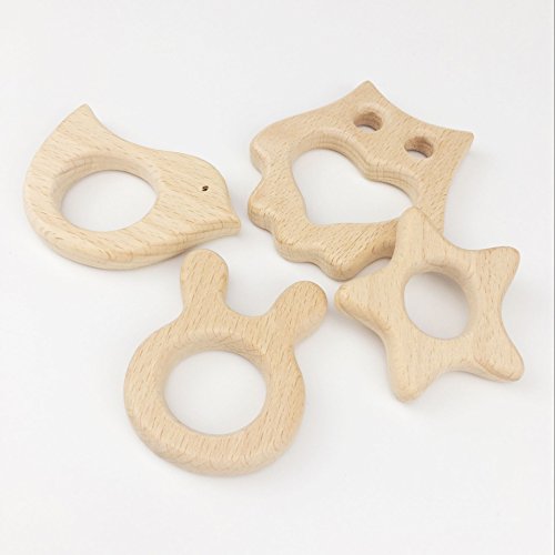 Mamimami Home 噛がため 噛固め ブナ 木製動物 4タイプ/4個/ゼント ベビーおもちゃ 可愛い 知育玩具 DIY ネックレス ガラガラ おしゃぶりのチェーン ペンダント出産祝い 新生児贈り物 0-3歳「FDA認可済」「BPAフリー」