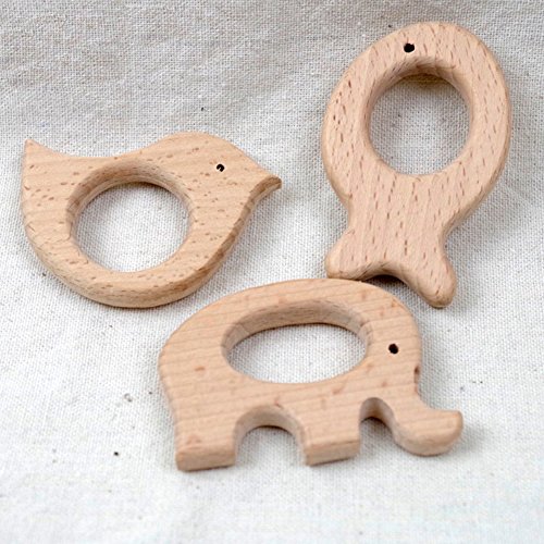 Mamimami Home 噛がため おしゃぶり ブナ 木製動物 3タイプ/6個/ゼント ベビーおもちゃ 知育玩具 DIY チュアブル ネックレス ガラガラ 噛固め カミカミ 出産祝い 新生児贈り物 0-3歳「FDA認可済」「BPAフリー」