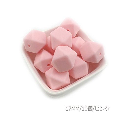 Mamimami Home 歯固め 歯がため シリコーン 八角 ビーズ 17MM 10個・ピンク 授乳 看護 ネックレス ガラガラ ジュエリー ラトル 歯固め 赤ちゃん おもちゃ DIY アクセサリー 新生児 誕生祝い 出産祝い 「BPAフリー」[FDA認可済]