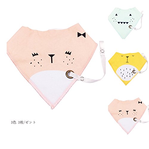 Mamimami Home ベビー ビブ 三角 よだれかけ 100% コットン 可愛い プリント おしゃぶりをぶら下げ サイズ調整可能 3枚/ゼント