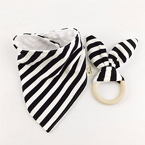 Mamimami Home ベビー ビブ 三角 よだれかけ 100% コットン + おしゃぶり 木製リング ウサギの耳 よだれかけ サイズ調整可能 2枚/ゼント