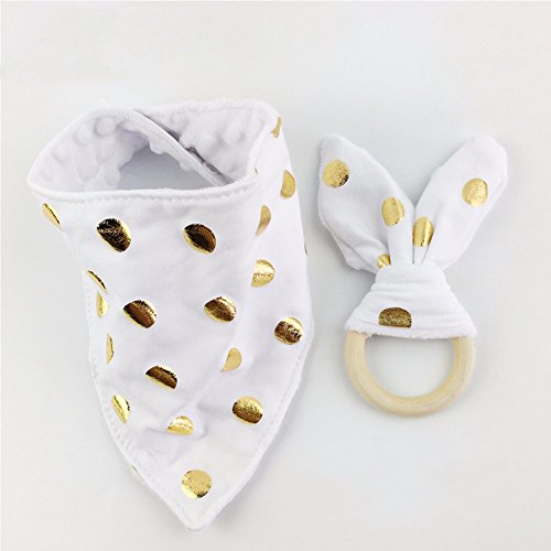 Mamimami Home ベビー ビブ 三角 よだれかけ 100% コットン + おしゃぶり 木製リング ウサギの耳 よだれかけ サイズ調整可能 2枚/ゼント