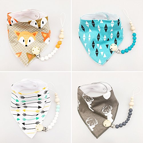 Mamimami Home ベビー ビブ 三角 よだれかけ 100% コットン + シリコーン おしゃぶり ペンダント よだれかけ サイズ調整可能 4ゼント
