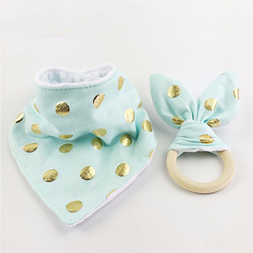 Mamimami Home ベビー ビブ 三角 よだれかけ 100% コットン + おしゃぶり 木製リング ウサギの耳 よだれかけ サイズ調整可能 2枚/ゼント