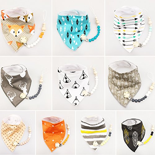 Mamimami Home ベビー ビブ 三角 よだれかけ 100% コットン + シリコーン おしゃぶり ペンダント よだれかけ サイズ調整可能 2枚/ゼント