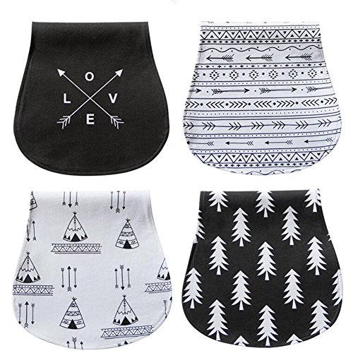 Mamimami Home 欧米スタイル ベビー よだれかけ コットン 柔らかい 半円 大面積 ビブ スナップ 3種類選択 サイズ調整可能 お食事 外出 用 4枚・セット