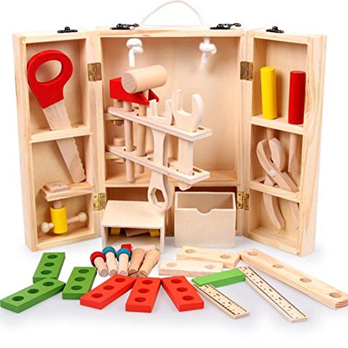 モンテッソーリウッド玩具木製玩具ワークベンチ(こどものおもちゃツールベンチ、大きな木製のナットとボルト幼児の発達を設定しました
