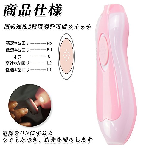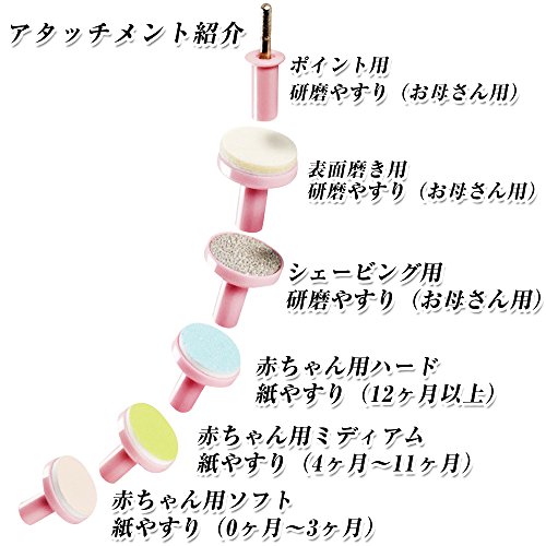- お子さまに合わせたアタッチメント(やすり)を選んでご使用ください。スピードも2段階で調整可能!滑りにくく持ちやすいグリップで安心してお使いいただけます。
