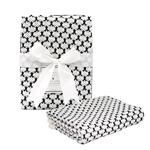 Manhattan Kids 赤ちゃん ブランケット コットン製 出産祝い ベビー バスタオル 夏用 冬用 通気 キッズ 寝具 新生児 綿100% 毛布 箱入り 76cm×102cm (ボーロ/ブラック)
