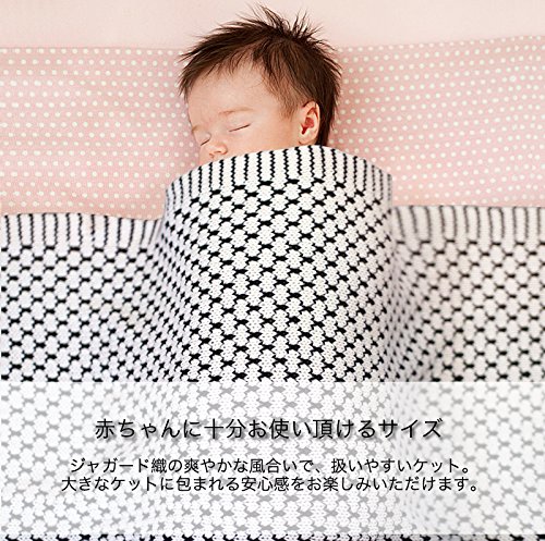 ●「最大限の安全」という品質。原料の選定から、製造工程にまでこだわった安心で安全なベビーアイテムをとりそろえました。●ふんわり柔らかいボリューム感のあるブランケット。織機で作っているため、二重織りになり空気をたっぷり含む生地ができあがります。●出産祝いギフトに喜ばれています!品のある包装、贈り物に最適!プレゼントにおすすめな柔らかケットです。●通気性があり快適で赤ちゃんのお肌にも安心。軽くて柔らかいコットンは通気性が高く、適度な温度を保つことができます。●耐久性が強く、使えば使うほどお肌になじみます。耐久性の強い素材でお洗濯の度に柔らかく、肌触りが良いという特性があります。●赤ちゃんに十分お使い頂けるサイズ。ジャガード織の爽やかな風合いで、扱いやすいケット。大きなケットに包まれる安心感をお楽しみいただけます。●オールシーズン、様々な場面で活躍するブランケット。一年を通して、様々なシーンで大活躍してくれます。いつでも気軽に、ご自宅で洗濯できるのも嬉しいブランケットです。