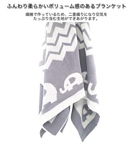 Manhattan Kids 赤ちゃん ブランケット コットン製 出産祝い ベビー バスタオル 夏用 冬用 通気 キッズ 寝具 新生児 綿100% 毛布 箱入り 76cm×102cm (象/グレー)