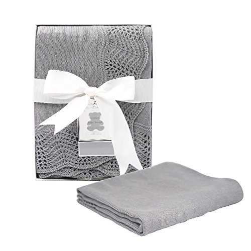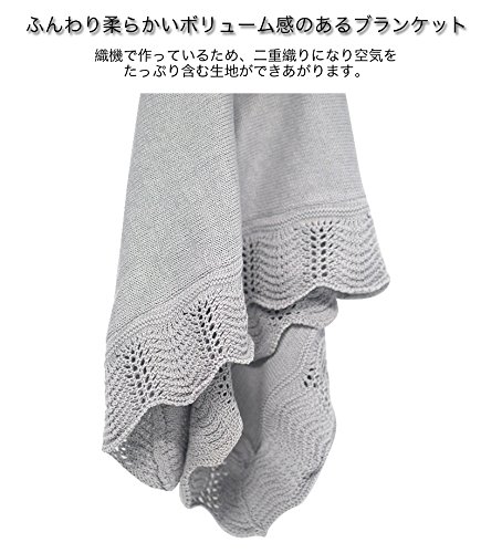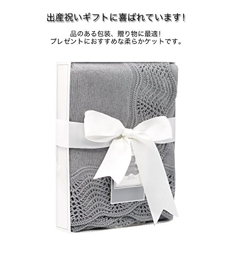 Manhattan Kids 赤ちゃん ブランケット コットン製 出産祝い ベビー バスタオル 夏用 冬用 通気 キッズ 寝具 新生児 綿100% 毛布 箱入り 76cm×102cm (レース風/グレー)